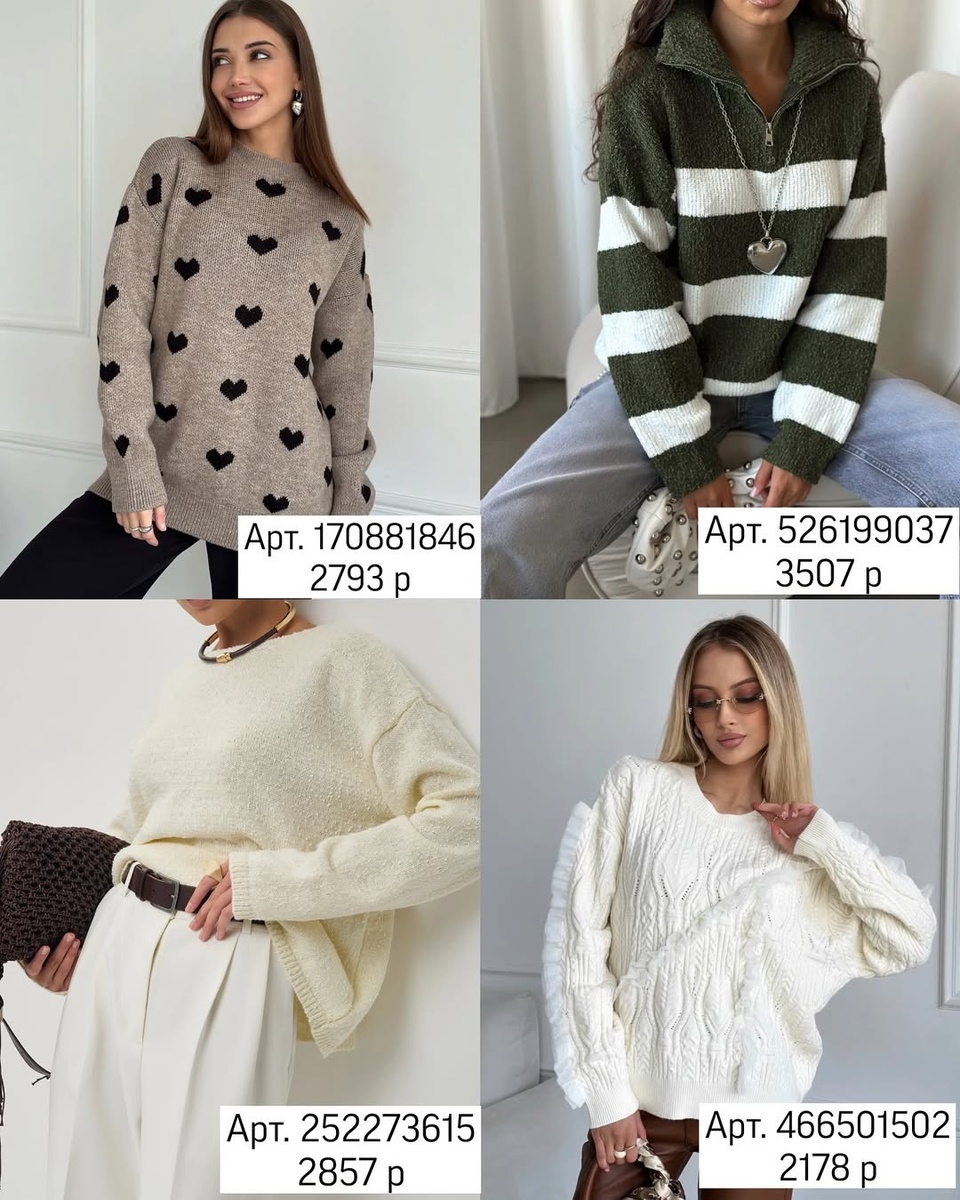 Правильно выбранный джемпер решает сразу три задачи: согревает, украшает и собирает образ. В этой подборке — модели на каждый вкус: от нежной романтики до выразительной фактуры. Разбираю каждую вещь строго по артикулам, описываю посадку, достоинства и даю практичные рекомендации, с чем носить и как обыгрывать.