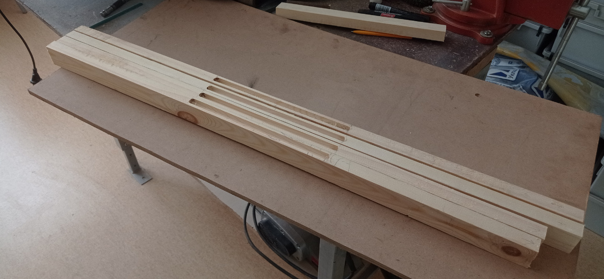 Иногда в силу рода деятельности приходится делать что-то габаритное. Для этого необходим большой стол. Но, чтобы он не мешал в нерабочее время, решено было сделать его складным. Все ведь помнят эти опасные новогодние раскладные столы из СССР, несущие радость тем, кто за ними сидел, и боль тем, кто их таскал? Так вот я решил сделать такой стол, учитывая специфику своей мастерской и остатки материала, которыми располагал. При необходимости стол раскладывается и образует полезную площадь 0,5х1,5 м., а в сложенном состоянии имеет толщину 8 см. Далее - тоже немаловажный элемент любой мастерской - мусорное ведро. Удивительно, но его я тоже сделал из МДФ и закрепил под боковой столешницей! Мусорка для сохранения эстетики получилась закрывающейся. Добавил декора в виде все тех же железнодорожных пуговиц. Емкость получилась небольшой, но это теперь лишний повод почаще убираться.