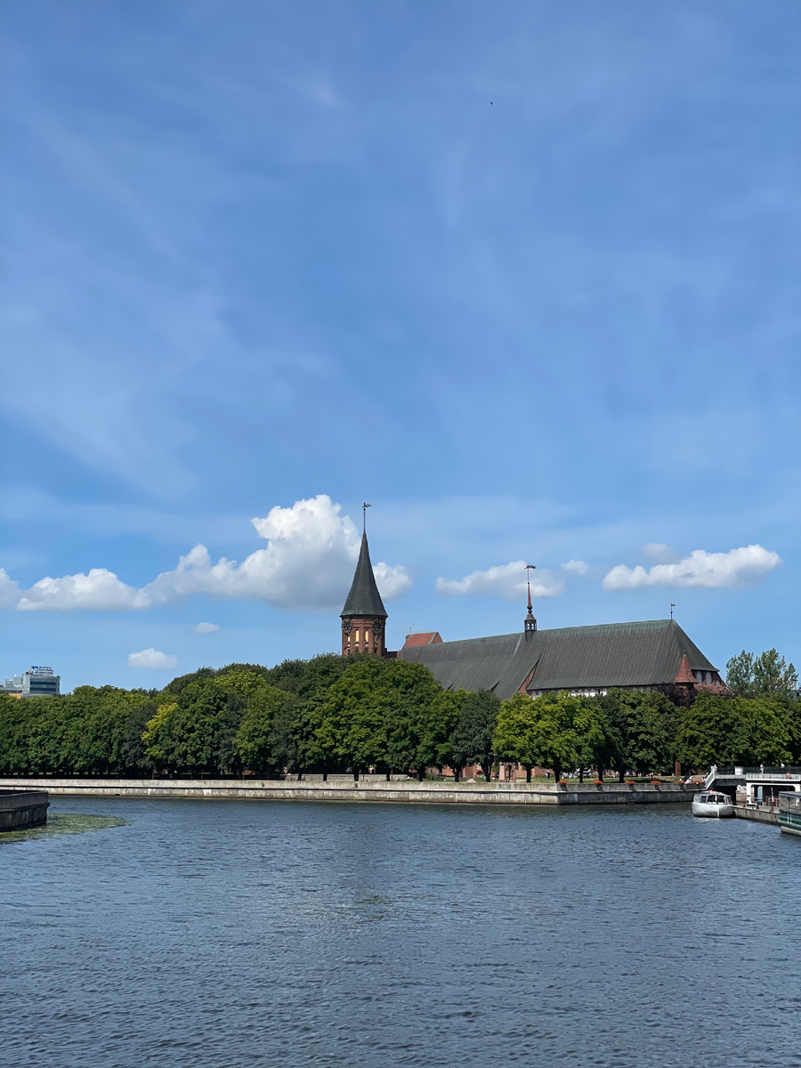 - Поэтому гуляем вокруг, наслаждаемся видами, по желанию можно сходить в Кафедральный Собор, что я и сделала, но правда без экскурсии, а самостоятельно. В Соборе есть музей, посвященный Иммануилу Канту и разные временные выставки. Я когда была летом 2023 года, посетила еще выставку, посвященную масонству в Калининграде.