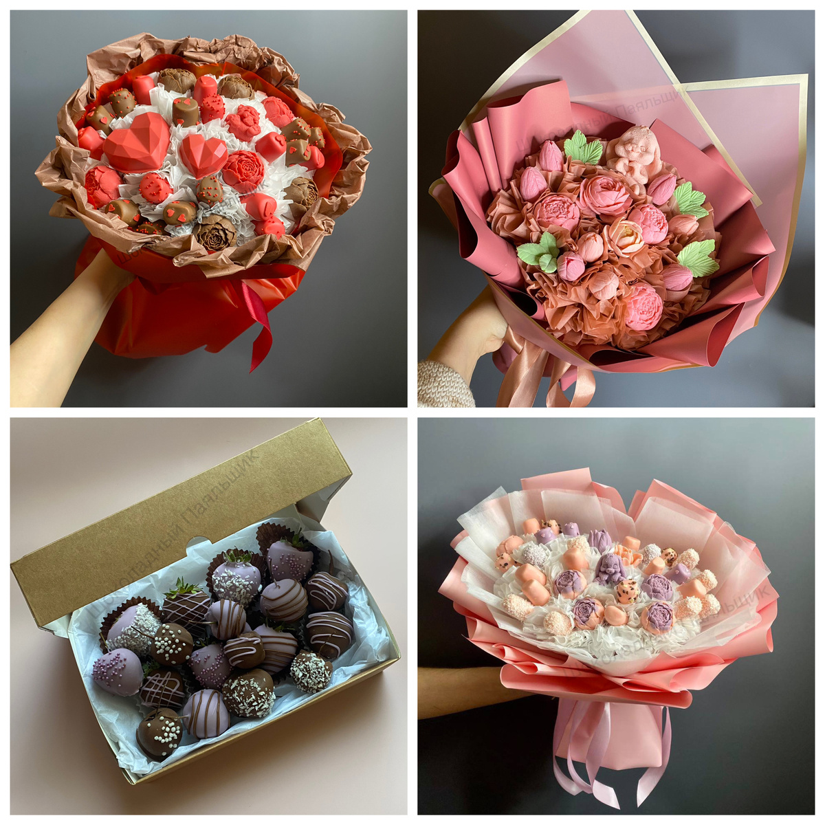 Просто захотелось сделать подарок, чтобы было не банально, а по-настоящему с теплом. Так и родился Шоколадный Паяльщик — место, где шоколад превращается в букеты, а эмоции аккуратно “спаиваются” между слоями сладости. Каждая композиция собирается вручную, с той самой любовью к деталям,
