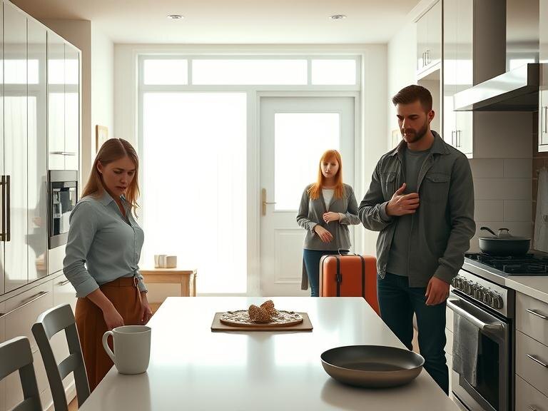 Ольга обернулась от плиты. На сковороде шкворчала картошка, в окне — мартовский свет, холодный, будто специально подчеркивал, что в доме сейчас будет не разговор, а маленький шторм.