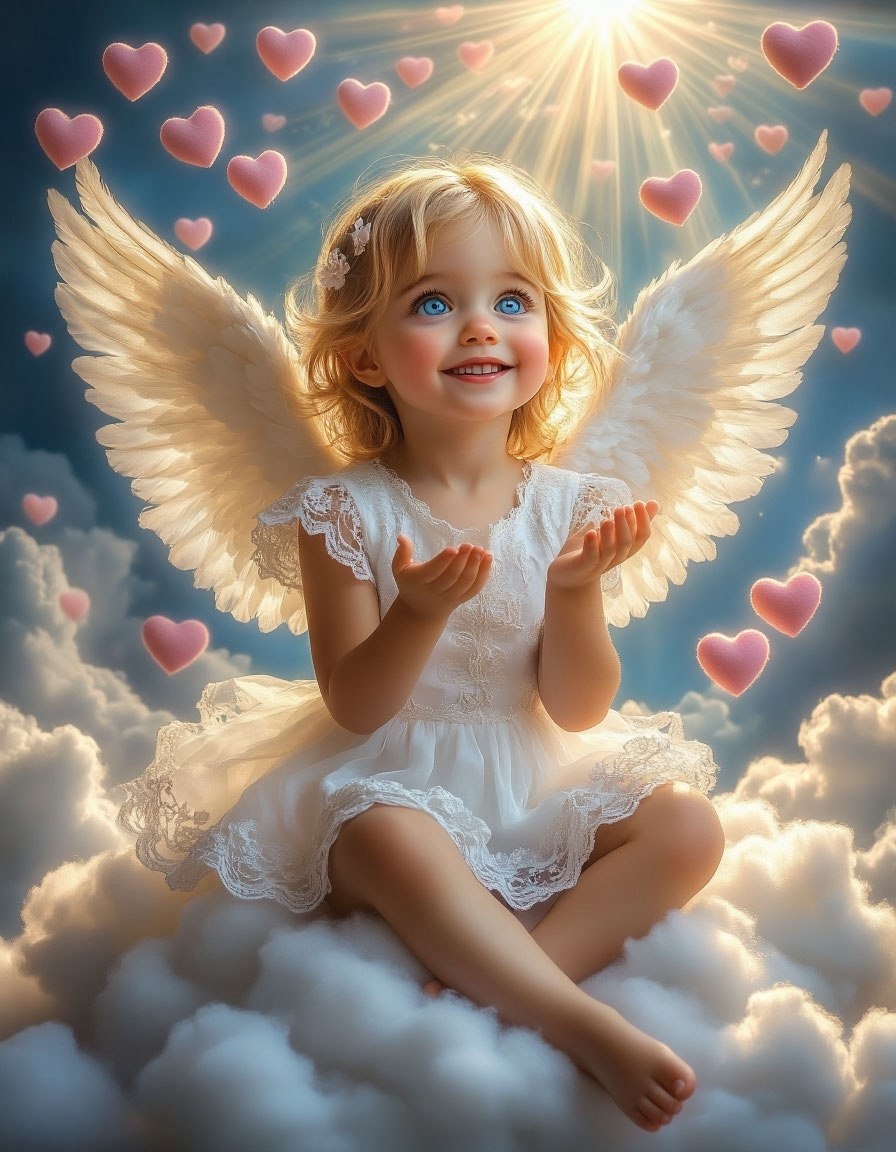 «Ангельский свет любви». Нейросеть: Алиса. #цифроваяживопись #нейросеть #девочка #нейроарт #идеи #цифровоефото #алиса #нейрофото #артыотнейросетей #рисунок #DigitalDreamscapes #digitalart #aiartwork #иллюстрация #нейроSD #ангел #арт #ai #сердце #облако #небо