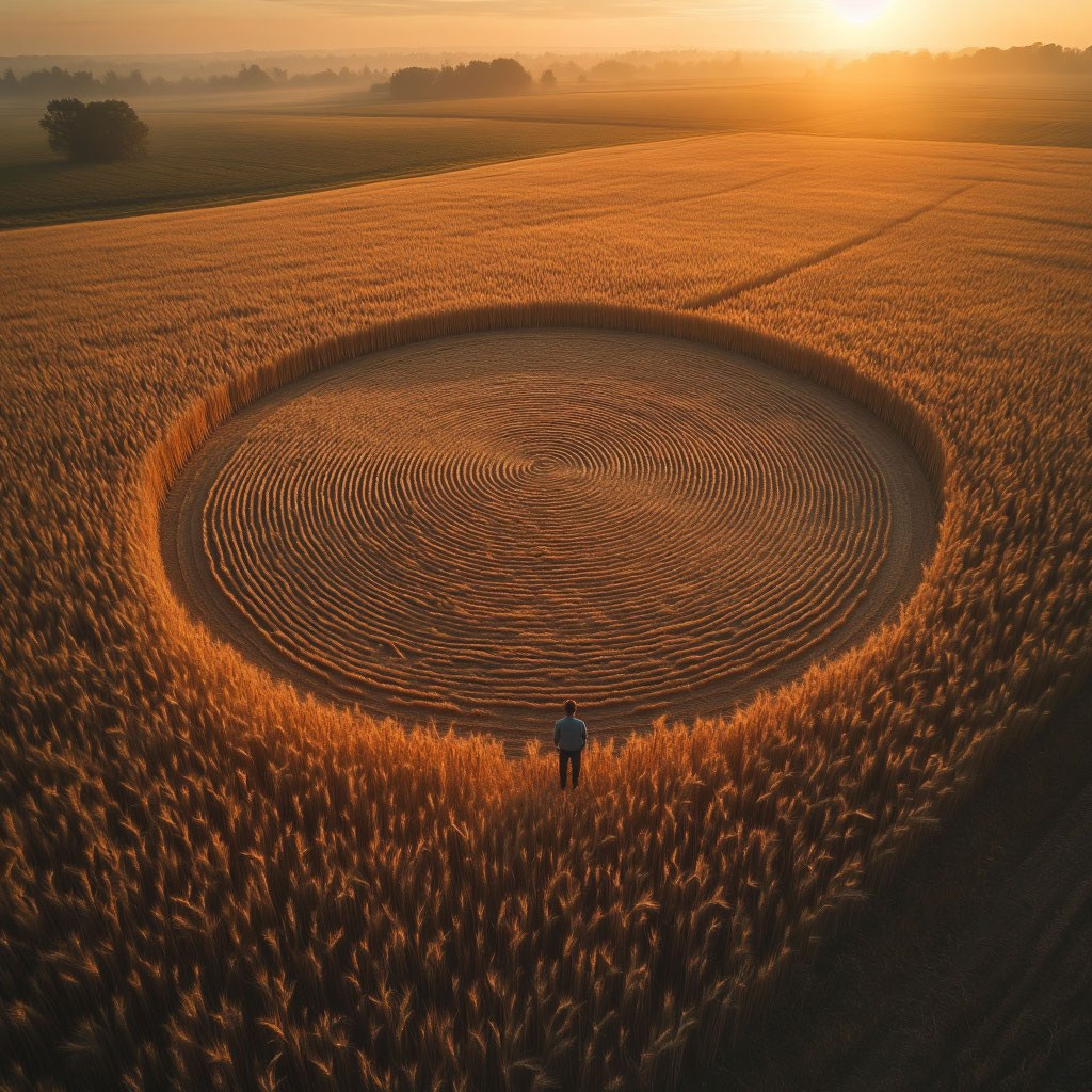 А один из самых странных феноменов современности. В 1991 году двое британцев — Дуг Боллен и Дэйв Чёрри — заявили: «Это делаем мы. Верёвки, доски, чувство юмора.» Они показали, как топчут хлеба за ночь, создавая круги.