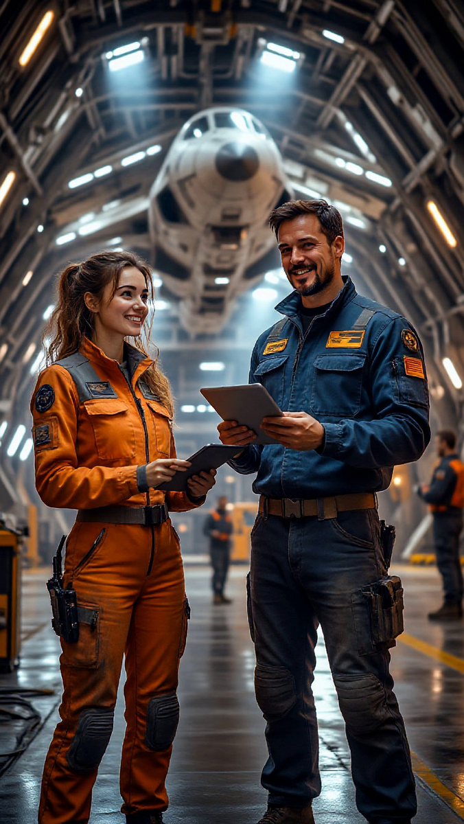 Ремонтный ангар поражал своими масштабами — гигантская металлическая пустошь, где их «Возрожденец» смотрелся скромным, хоть и отважным островком в море ферм, лесов и свисающих с потолка манипуляторов. Корабль, стоял на массивных опорах, опутанный жгутами кабелей и шлангами.