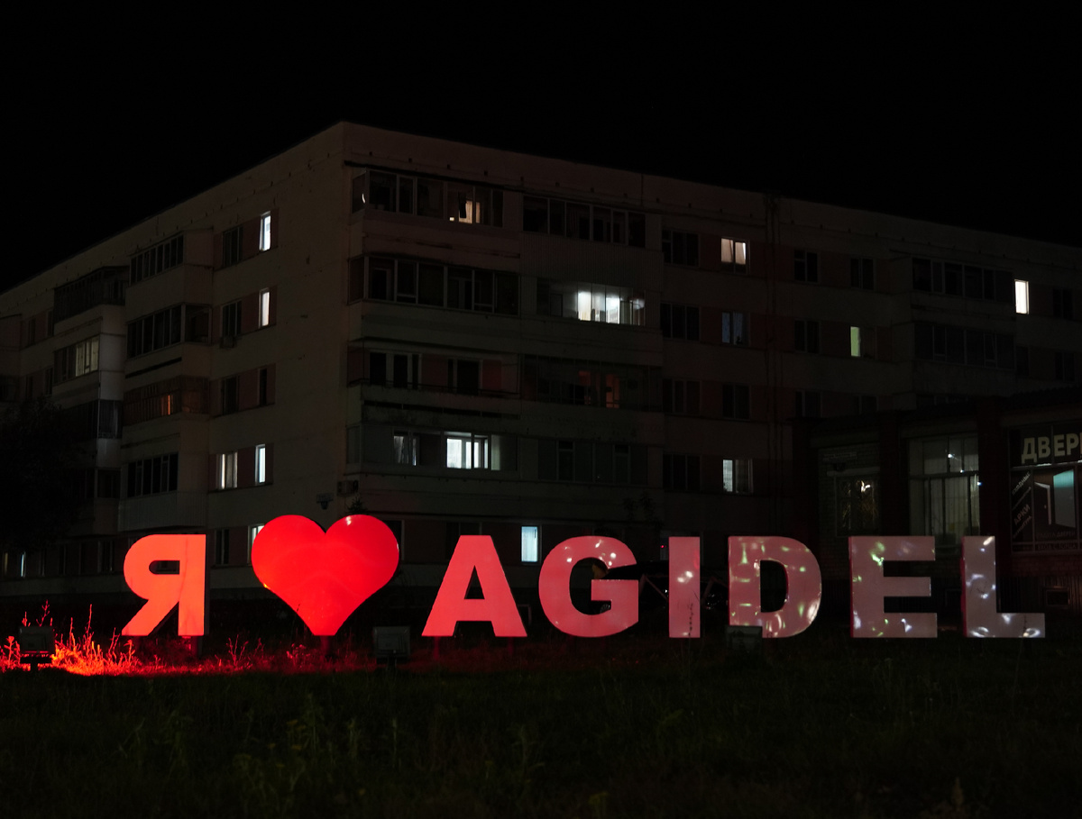 Изначально это рабочий посёлок, созданный для строительства атомной электростанции. С 1980 года на территорию будущего города начали приезжать люди. Хорошие зарплаты, перспективы и дух социализма привлекали людей в это место. Однако авария на Чернобыльской АЭС поставила крест на проекте, а заодно и на перспективах города. Сотни высококлассных специалистов остались без средств к существованию. Все 90-е годы агидельцы боролись за свой город. Постепенно наладилось производство, и жизнь пошла своим чередом. Но вот осадок у тех, кто живёт тут с самого основания, остался. В гостинице я разговорился с местной жительницей. Оказалось, она приехала сюда после техникума и всю жизнь отдала Агидели. Мне очень хотелось распросить её про город, про достопримечательности, про то, как здесь живут люди. Она рассказала мне про необычные названия микрорайонов города, посоветовала сходить на недавно благоуст