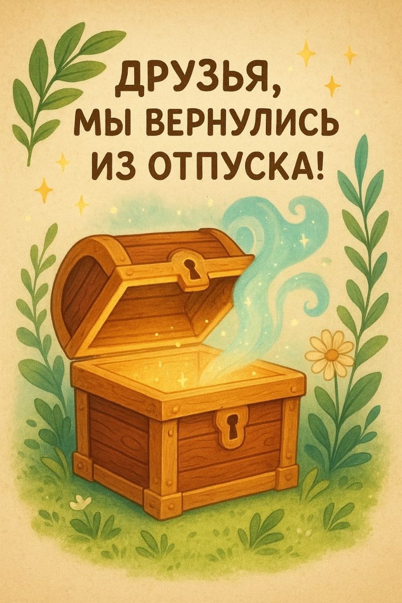 Наш Сказочный сундук снова открыт — а значит, вас ждут новые истории, чудеса и немного волшебства на каждый день 💫 Пока море ещё шумит в памяти, а солнце прячется в волосах, мы уже готовим свежие сказки — тёплые, добрые и с душой. Заглядывайте почаще — впереди много удивительных историй!