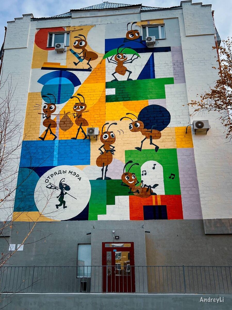 🐜Сквер «Отрядов мэра» в Тюмени — новое общественное пространство по адресу ул. Мельничная, 23. 🌿Здесь можно увидеть необычные арт-объекты — блестящих скульптурных муравьёв и мурал с символикой отрядов мэра.