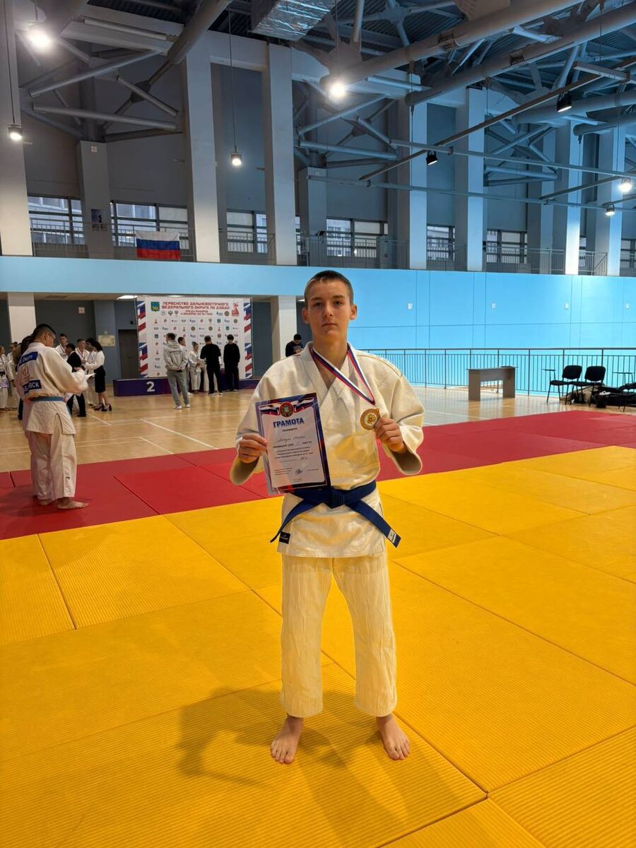 Корсаковский дзюдоист стал призером Первенства Дальневосточного округа 🗣Во Владивостоке на базе ДВФУ прошло Первенство Дальневосточного федерального округа по дзюдо до 21 года. 🇷🇺На протяжении двух дней за медали боролись более 80 спортсменов из девяти регионов Дальнего Востока. 🥉По итогам состязаний дзюдоист из Корсакова Евгений Лапезин завоевал бронзовую награду турнира. 👏Желаем Евгению не останавливаться на достигнутом и новых побед!