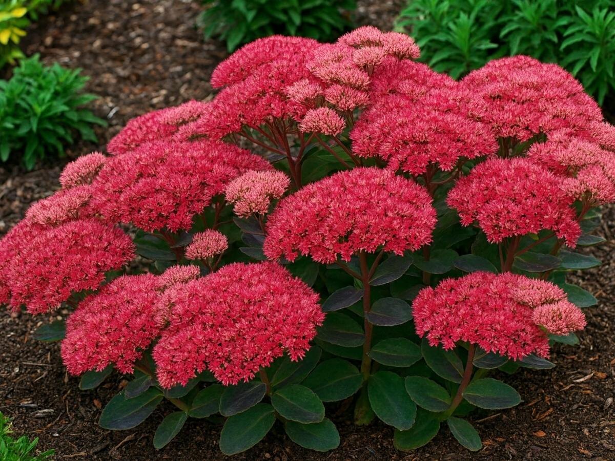 Некоторые растения будто созданы для тех, кто любит красоту, но не хочет возиться с лейкой и удобрениями. Седум, или очиток, именно такой. Он растёт даже там, где не приживается почти ничего, и при этом цветёт так обильно, что способен затмить самые капризные цветы. Секрет живучести седума — в его листьях. Они мясистые и сочные, как у суккулентов, и умеют запасать воду на случай засухи. Благодаря этому растение спокойно переносит жару, бедную почву и редкие дожди. Даже если вы уедете на всё лето, вернётесь — и он будет стоять зелёный, свежий и цветущий. Седум формирует аккуратные кустики высотой от 10 до 60 сантиметров. Летом и осенью он покрывается пышными соцветиями — белыми, розовыми, лимонными или фиолетовыми, в зависимости от сорта. А ближе к осени листья окрашиваются в бордовые и рубиновые оттенки, придавая саду богатую палитру. Факт: соцветия седума не теряют декоративности даже после первого заморозка. Это растение любит солнце, но не обидится, если часть дня проведёт в тени. О
