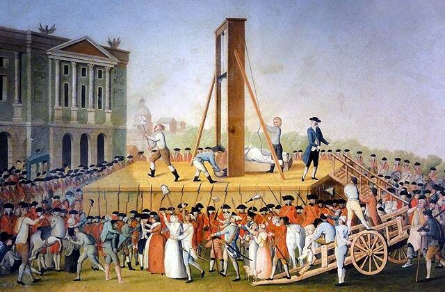 Но однажды вся эта роскошь внезапно закончилась, люди стали голодать и началась Великая Французская Революция. Мария Антуанетта искренне не понимала, чего они… бунтуют там чего-то… ну нет у них хлеба, ну пусть едят бриоши тогда…🤷♀️ Вот НАСТОЛЬКО далеко была она от народа. Поэтому и вот - ☝️смотри картинку, голова с тела долой. Вот такой печальный конец😥