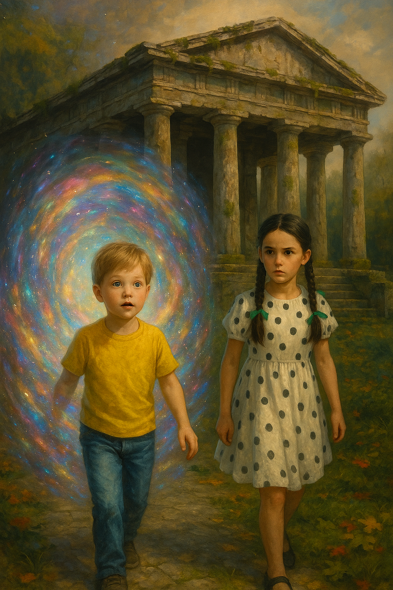 Лёгкое пощипывание во всём теле и ослепительное светопредставление, будто он очутился внутри калейдоскопа, длилось всего пару секунд - и Юра оказался на холме перед заброшенным храмом, напоминавшим древнегреческий. Краска на колоннах и стенах облупилась и выгорела настолько, что трудно было даже представить, в какой цвет они были когда-то выкрашены.