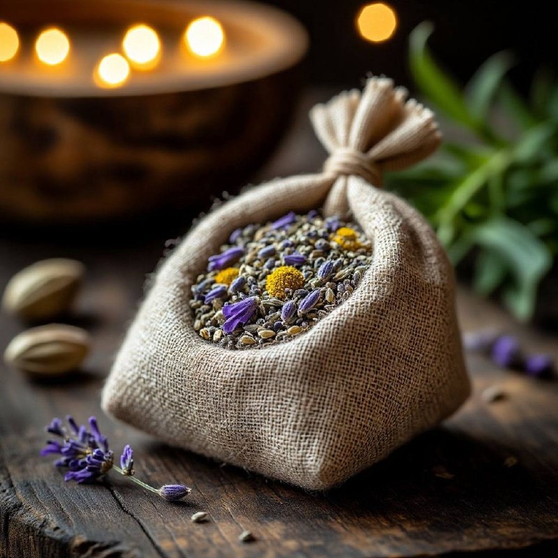 Мешочек с травами для спокойного сна История появления Саше (в переводе с французского — мешочек) — это ароматическая подушечка с травами, известная с давних времен. На Руси подобные мешочки использовались задолго до знакомства с французской культурой. Беспокойным детям в подушку зашивали корень валерианы для крепкого сна. В богатых домах Франции такие мешочки украшали интерьеры и создавали особую атмосферу уюта. Польза для сна Ароматические мешочки помогают: Улучшить качество сна Бороться с бессонницей Успокоить нервную систему Создать расслабляющую атмосферу Снизить уровень тревожности Состав травяного наполнения Для создания мешочка подойдут следующие травы: Базовые компоненты: Лаванда — успокаивает, снижает тревогу, улучшает качество сна Валериана — помогает при беспокойстве и бессоннице Хмель — снимает нервное напряжение Мелисса — действует как мягкий антидепрессант Липовый цвет — обладает успокаивающим эффектом Дополнительные травы: Ромашка — помогает быстрее заснуть Розмарин — с