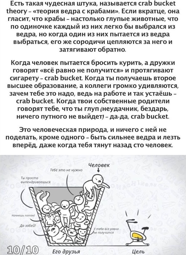 Т.е. ведро с крабами которые тянут - лишь звоночек, что нужно шевелить лапками.
