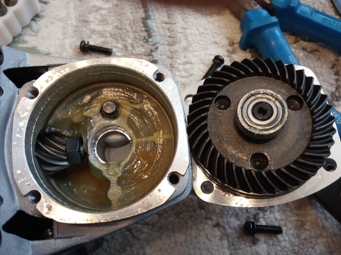 Если вы хоть раз вскрывали редуктор болгарки (углошлифовальной машины, УШМ), то должны были видеть плачевную картину – внутри много смазки, она свежая, не потемневшая, но зубчатая пара работает практически на сухую. В таком режиме быстро изнашивают и именитые бренды и более дешевые марки. Вопрос времени. УШМ начинает сильно шуметь и в итоге при значительном износе зубцов редуктор их начинает клинить, электродвигатель испытывать повышенную нагрузку, обмотка сильнее нагреваться и в итоге все приведет к полному заклиниванию редуктора или к перегоранию обмотки. Примерно так закончила жизнь одна из моих недорогих УШМ после 7 лет ежегодного использования на стройке. Дело в том, что смазка в редукторе (похожий на литол) – слишком густая. А при высоких оборотах вращения шестерни раскидывают ее, осушая себя. Вообще, рекомендуют каждые 50-70 часов работы или в начале каждого сезона активного использования менять смазку в редукторе. Смазка со временем стареет, при таком сухом режиме загрязняется