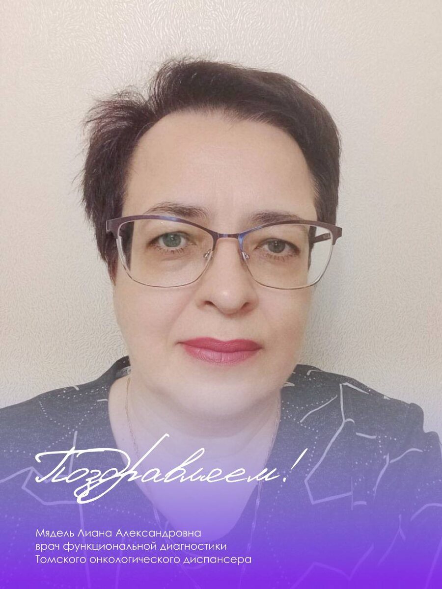 Сегодня юбилей празднует Мядель Лиана Александровна — врач функциональной диагностики Томского онкологического диспансера