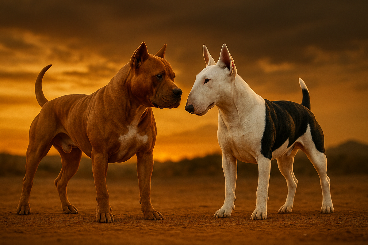 Это бой двух философий. Бультерьер — символ напора и упрямства, Питбуль — воплощение холодной эффективности. Один бьёт сердцем, другой — расчётом.