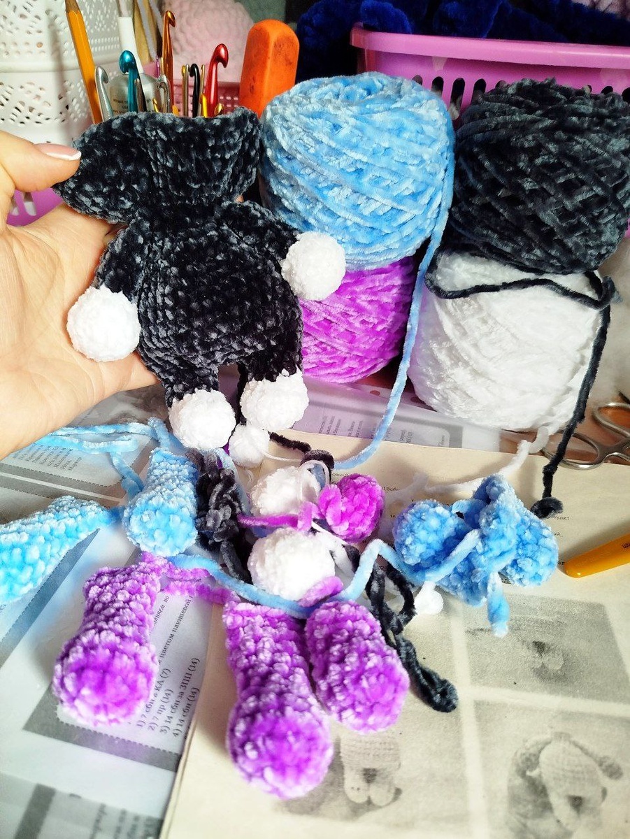 Мои ночные повязушки)))🧶🧶🧶 Вяжу из тонкой велюровой пряжи🤩🫶 Она такая яркая и вяжется очень хорошо. Так что вязала под полнометражные мультики "Щелкунчик и волшебная флейта" и "Руслан и Людмила". Скоро будут зайки 🐰🐰 и котик🐱 Сегодня нужно их довязать и приступить к лошадкам. Так как вчера у меня был внеплановый разгрузочный день, то ночные повязушки были для души, да и из светлой пряжи. Сегодня будут темные лошадки с попками 🍑 и лошадки побольше. В общем, сегодня очень много планов по работе, но, домашние дела, прогулка с ребенком и готовку - никто не отменял. Всем хорошего воскресенья и прекрасного отдыха 🫶 #творческиелюди #хобби #своимируками #ручнаяработа