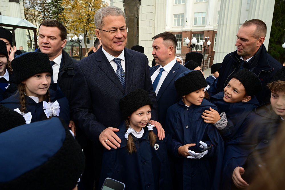 11 октября на Советской площади Уфы 578 школьников из городов и районов Башкортостана торжественно посвятили в «шаймуратовцы». Всего в таких классах обучаются 6 тысяч ребят. Глава Республики Башкортостан принял участие в торжественной церемонии. Он возложил цветы к монументу, увековечивающему память Героя России, генерал-майора Минигали Шаймуратова. Этот памятник, напоминающий о доблести воинов 112-й Башкирской кавалерийской дивизии и всех, кто отдал свою жизнь за Отчизну, был открыт три года назад, в День Республики. В своем выступлении глава региона подчеркнул значимость фигуры Минигали Шаймуратова для патриотического воспитания молодежи, напутствуя учеников так называемых «шаймуратовских» классов. «Сегодняшний день — особенный для вас. В этот государственный праздник, в День Республики, вы становитесь частью большой и сплоченной семьи, которая с гордостью чтит имя нашего национального героя, Минигали Шаймуратова, – отметил Радий Хабиров. – Это почетно и ответственно. Вы становитесь