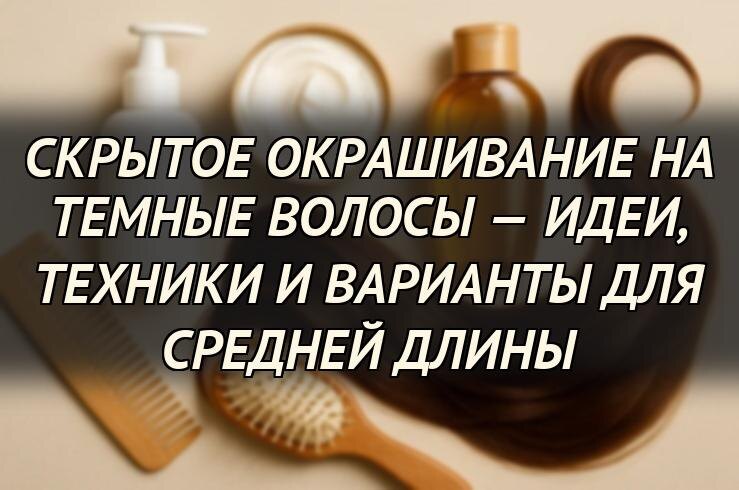 Скрытое окрашивание на темные волосы для средней длины подразумевает аккуратные выделения или мелирование, которые создают естественный эффект без резких переходов, подчеркивая текстуру волос и добавляя объем.