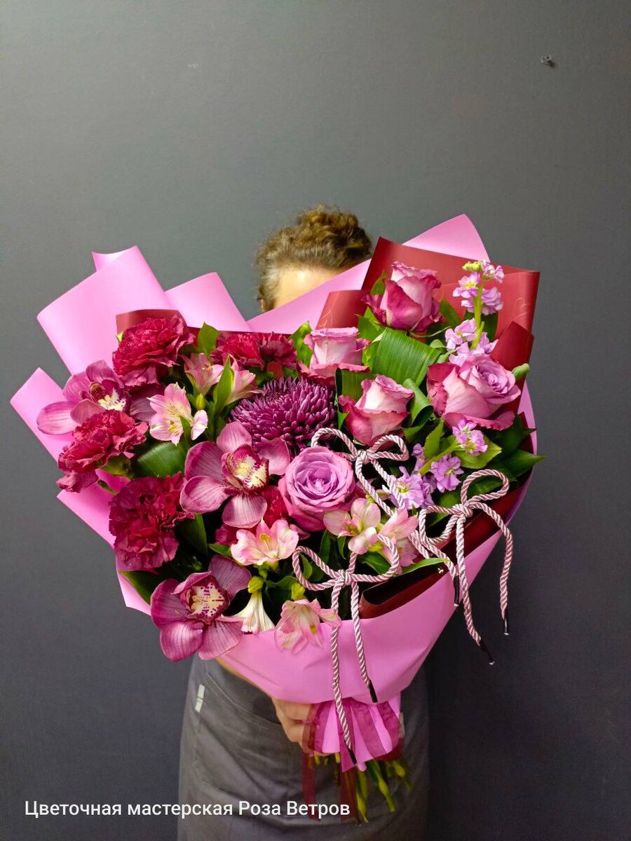 Малиновый мусс Стоимость: 7860 р Размер: 50*60 Роза Орхидея Матиола Хризантема Гвоздика Альстромерия Декор Зелень Упаковка Оформить заказ можно по телефону или написав на ватсап +7 999 009 75 00 Комендантский пр.9к2 TPK Модный променад +7 921 953 53 92 Весельная 7/10 +7 931 636 53 53 ул. Бонч-Бруевича 3 - Доставка по СПб