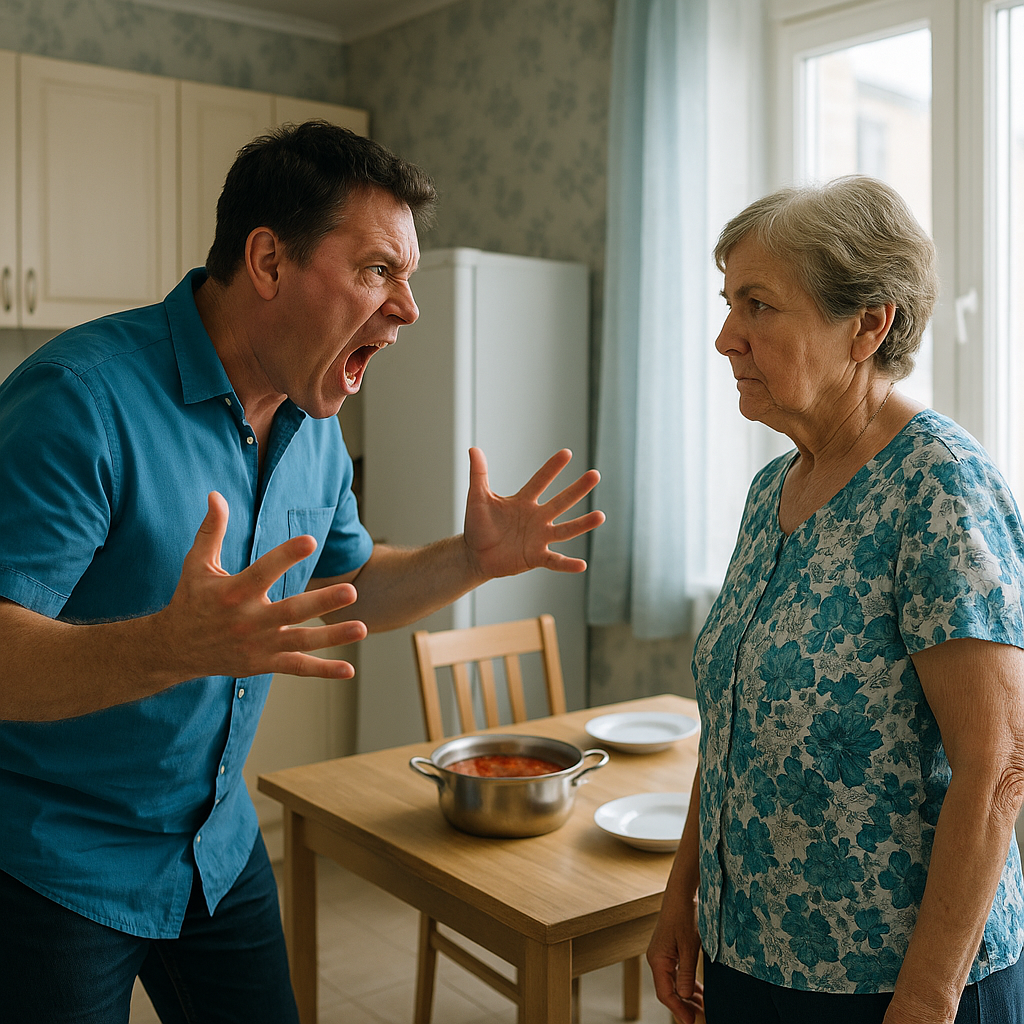 Вера застыла с половником над кастрюлей. Борщ булькал, выплёскивая красные капли на плиту. Сын стоял в дверях кухни — высокий, сытый, в дорогой рубашке. Тридцать восемь лет, а смотрит так, будто она должна ему по гроб жизни.