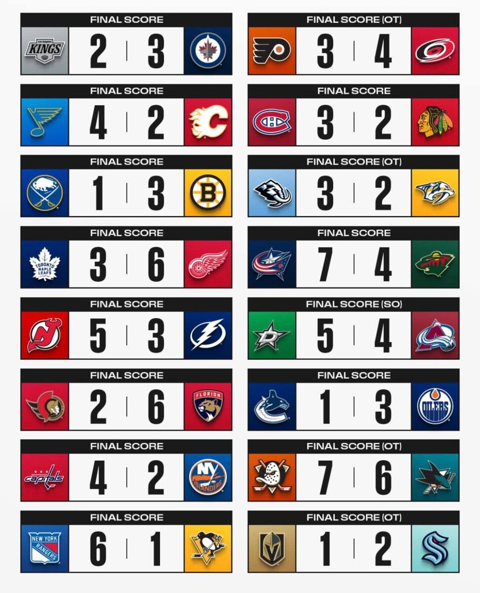 π·πΊ ΠΠ°ΡΠΈ Π² ΠΠ₯Π π ΠΠ΅ΡΠ΅Π΄Π°ΡΠ° ΠΡΡΠ΅ΠΌΠΈΡ ΠΠ°Π½Π°ΡΠΈΠ½Π° ΠΏΠΎΠΌΠΎΠ³Π»Π° Β«Π Π΅ΠΉΠ½Π΄ΠΆΠ΅ΡΡΒ» ΡΠ°Π·Π³ΡΠΎΠΌΠΈΡΡ Β«ΠΠΈΡΡΡΠ±ΡΡΠ³Β» (6:1). ΠΠΎΠ»ΠΊΠΈΠΏΠ΅Ρ ΠΠ³ΠΎΡΡ Π¨Π΅ΡΡΡΡΠΊΠΈΠ½ ΡΠ΄Π΅Π»Π°Π» 18 ΡΠ΅ΠΉΠ²ΠΎΠ². π ΠΠ²Π΅ ΠΏΠ΅ΡΠ΅Π΄Π°ΡΠΈ ΠΡΡΠ΅Π½ΠΈΡ ΠΡΠΈΡΡΠΊΠ° ΠΏΠΎΠΌΠΎΠ³Π»ΠΈ Β«ΠΡΡ-ΠΠΆΠ΅ΡΡΠΈΒ» ΠΎΠ΄ΠΎΠ»Π΅ΡΡ Β«Π’Π°ΠΌΠΏΡΒ» Π² ΠΌΠ°ΡΡΠ΅ ΠΠ₯Π β 5:3. Π ΠΎΡΡΠΈΠΉΡΠΊΠΈΠΉ ΡΠΎΡΠ²Π°ΡΠ΄ ΠΠΈΠΊΠΈΡΠ° ΠΡΡΠ΅ΡΠΎΠ² Π·Π°Π²Π΅ΡΡΠΈΠ» Π²ΡΡΡΠ΅ΡΡ Ρ ΠΏΠΎΠΊΠ°Π·Π°ΡΠ΅Π»Π΅ΠΌ ΠΏΠΎΠ»Π΅Π·Π½ΠΎΡΡΠΈ Β«-2Β». π ΠΠ°Ρ ΠΠ»Π΅ΠΊΡΠ°Π½Π΄ΡΠ° ΠΠ²Π΅ΡΠΊΠΈΠ½Π° ΠΏΠΎΠΌΠΎΠ³ Β«ΠΠ°ΡΠΈΠ½Π³ΡΠΎΠ½ΡΒ» ΠΎΠ±ΡΠ³ΡΠ°ΡΡ Β«ΠΠΉΠ»Π΅Π½Π΄Π΅ΡΡΒ» (4:2). π ΠΡΠ±Π»Ρ ΠΠΈΡΠΈΠ»Π»Π° ΠΠ°ΠΏΡΠΈΠ·ΠΎΠ²Π° Π½Π΅ ΡΠΏΠ°Ρ Β«ΠΠΈΠ½Π½Π΅ΡΠΎΡΡΒ» ΠΎΡ ΠΏΠΎΡΠ°ΠΆΠ΅Π½ΠΈΡ Π² ΠΌΠ°ΡΡΠ΅ Ρ Β«ΠΠΎΠ»Π°ΠΌΠ±ΡΡΠΎΠΌΒ» Ρ 11 ΡΠ°ΠΉΠ±Π°ΠΌΠΈ (4:7). Π€ΠΎΡΠ²Π°ΡΠ΄ ΠΠΈΡΠΈΠ»Π» ΠΠ°ΡΡΠ΅Π½ΠΊΠΎ ΠΎΡΠΎΡΠΌΠΈΠ» Ρ