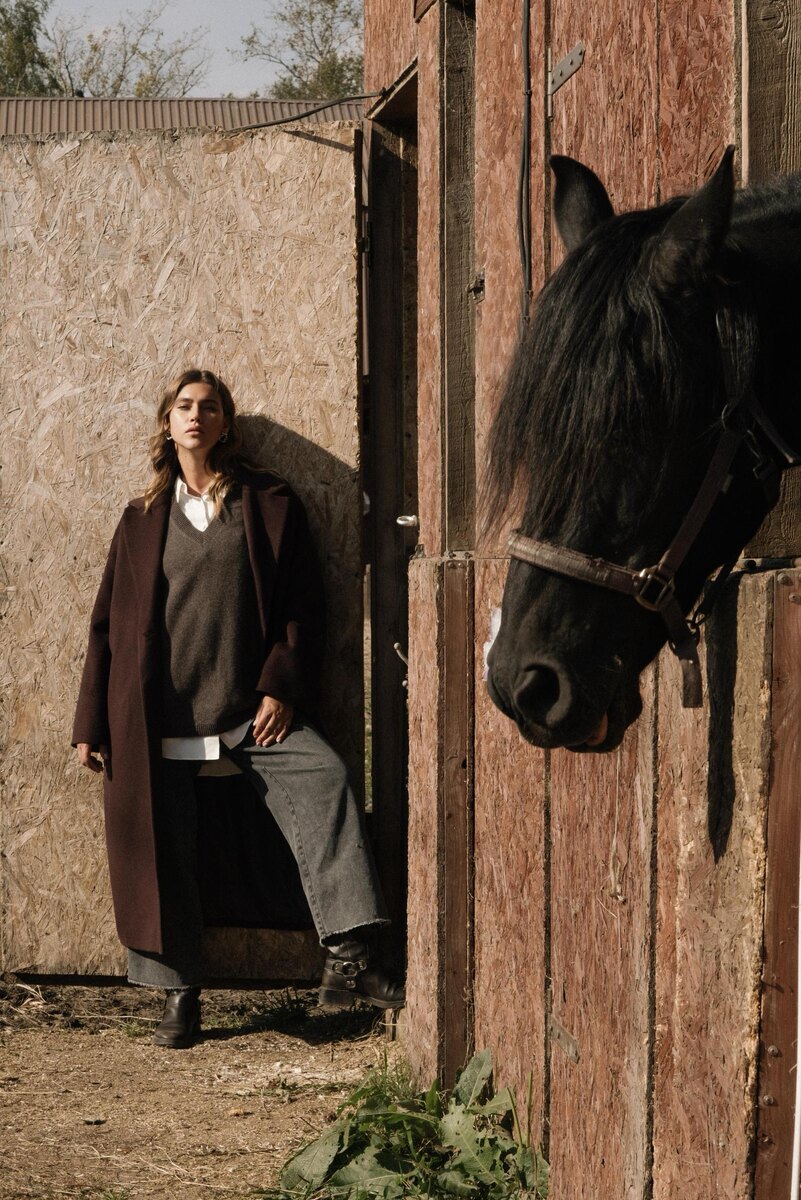 Теплое шерстяное пальто насыщенного оттенка, мягкий трикотаж и спокойствие — все для идеального побега туда, где природа в багряных оттенках
