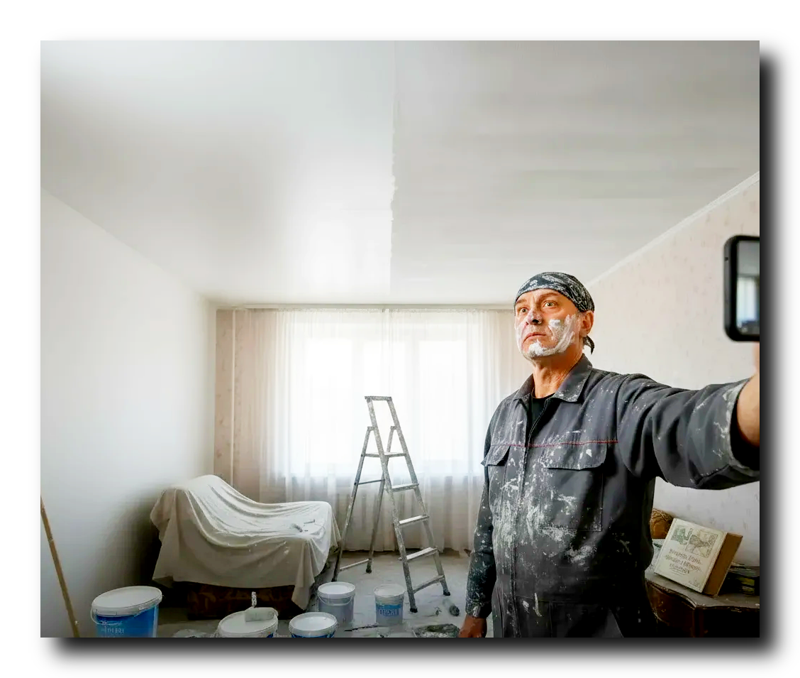 Почему я, седой и, как мне казалось, мудрый Николаич, решил взяться за эту тему? А потому что проблема эта — тихая эпидемия среди частных застройщиков и владельцев жилья. Все хотят белый потолок. Он визуально поднимает помещение, делает его светлее, чище, эта эталонная чистота, с которой все начинается. Но вот незадача — 99% людей, взявших в руки валик, в итоге получают не небесную лазурь, а нечто серо-молочное, покрытое странными разводами и причудливыми тенями.