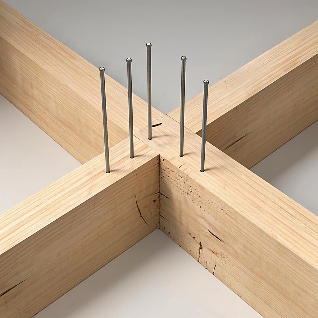 Необходимость соединить между собой бруски возникает часто. Иногда не хватает нужной длины, а в другом случае – требуется упрочнить поврежденный участок. Для этого выбирается один из возможных способов для соединения деревянных брусков с максимальной надежностью. Такой способ самый простой и при правильном подходе эффективно соединяющий два отрезка. При этом нахлёст брусков должен быть достаточным, чтобы исключить подвижность и люфт. Например, если соединяются два бруска длиной 3 метра, то один должен заходить на другой не менее, чем 25-30 см. Это позволит компенсировать нагрузку на место соединения (а она здесь будет высока). В качестве гвоздей стоит использовать изделие с длиной от 110 мм. Довольно надёжный вариант, позволяющий скрепить два деревянных бруска. Длина подбирается исходя из ширина бруска помноженной на два плюс 3-4 см. Обязательно используются подкладочные шайбы с двух сторон. Это позволит: Высокой прочностью такой способ скрепления брусков не обладает. Это скорее вспомо