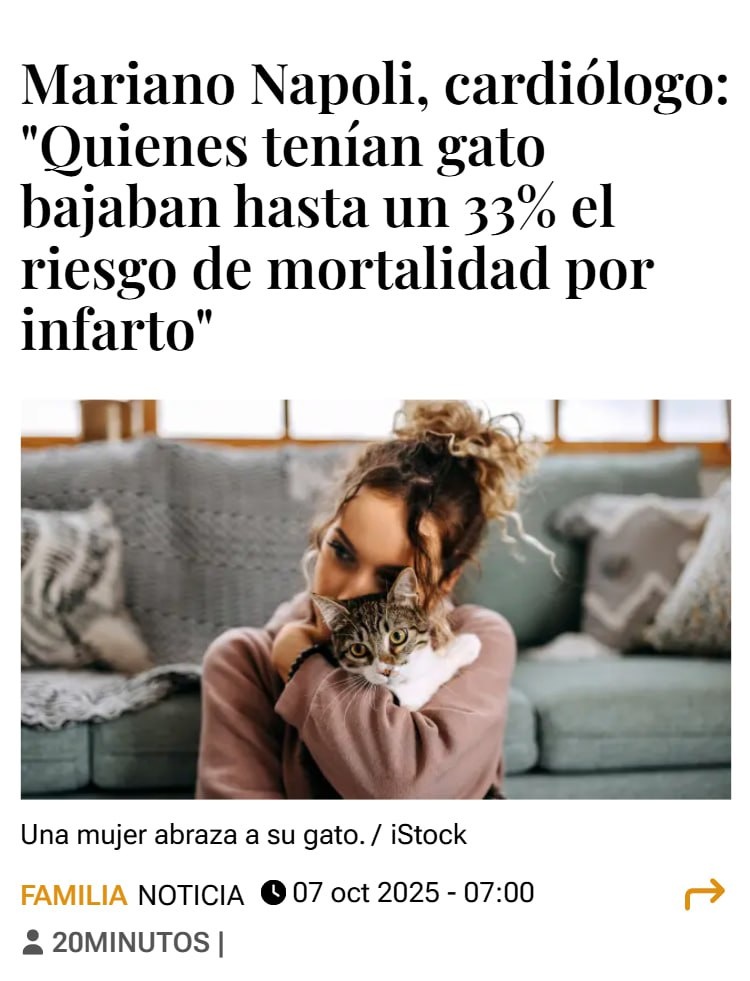 Привет, друзья! Сегодня хочу поделиться с вами интересными результатами исследования, которое показало, что жизнь с кошками может значительно снизить риск смерти от инфаркта. Учёные провели наблюдения за людьми в течение более чем 20 лет и обнаружили, что те, у кого были кошки, меньше подвергались риску смерти от сердечно-сосудистых заболеваний, включая инфаркт и инсульт. Всё дело в том, что взаимодействие с кошками — их глажение, «тисканье» и просто умиление от их поведения — снижает уровень стресса, стабилизирует давление и частоту сердечных сокращений. Это создаёт более спокойную и гармоничную атмосферу, что, в свою очередь, положительно сказывается на здоровье сердца. Интересно, как домашние животные могут влиять на наше здоровье, не так ли? А может быть, и владельцы собак могут похвастаться подобными преимуществами? Подписывайтесь на канал «The Collective», чтобы не пропустить новые интересные материалы! Что вы думаете по этому поводу? Пишите в комментариях!