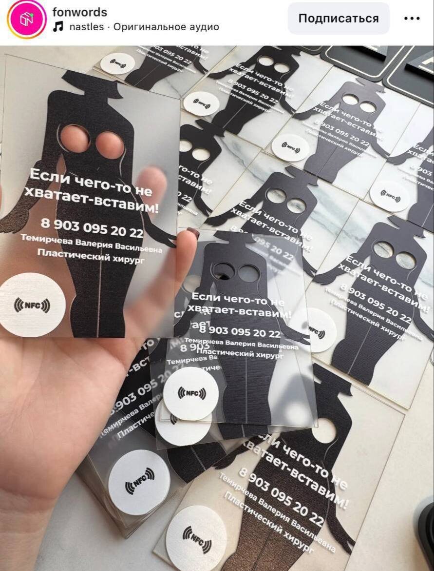 Fon Words сделали самые наглядные визитки для пластического хирурга Любой, кто возьмёт, сразу поймёт гарантируемый эффект. 👉Связаться со мной ☀️ Бизнес в Телеграмм: Стратегия Продвижения☀️