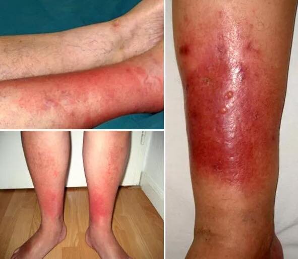 📍Нога. Часто рецидивирует, приводя к фиброзным изменениям и слоновости.