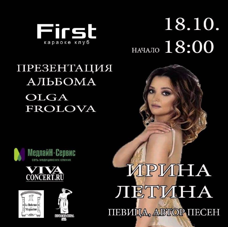 Насыщенное 18- ое октября! Презентация альбома певицы и ведущей Ольги Фроловой, жены Отара Кушанашвили . Стартуем в ТЦ «Гагаринский» в 14-00 на 1 этаже Атриума, продолжаем в караоке First 🖤 #ольгафролова #ириналетина