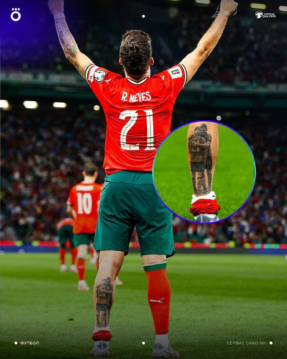 В ответ на пост В память о лучшем друге. Невеш забил первый гол за сборную и посвятил его Диогу Жоте 🕊 После смерти Диогу Рубен сделал татуировку с ним на левой ноге.