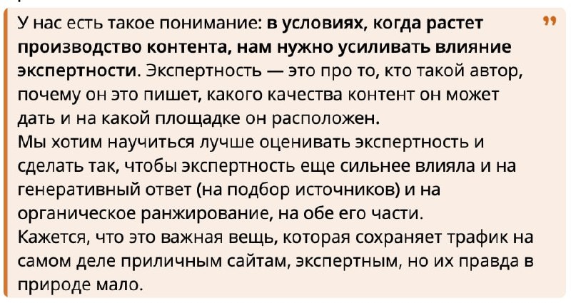 На картинке позиция Яндекса в части контента на сайтах. Очевидно, намек на ИИ- генерацию статей. Почитайте. Хотя какие сделать выводы я еще не понял... В любом случае, репрессий, кажется, не ожидается. Ожидают экспертность. А разве ИИ не экспертна? :) Русский ИТ бизнес