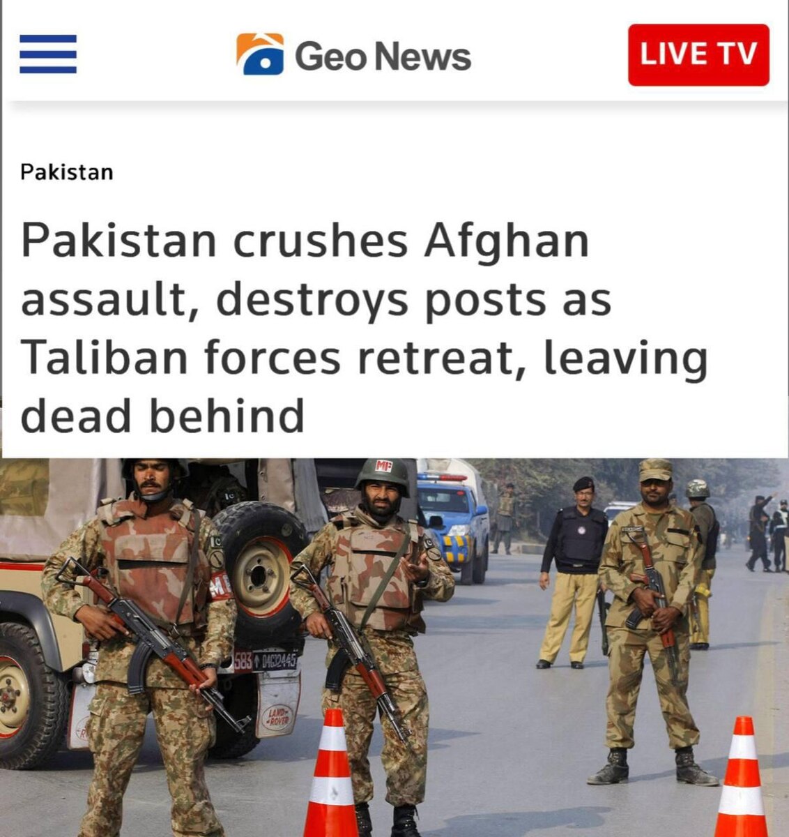 Pokiston armiyasi to‘qnashuvlar natijasida Afg‘onistonning 19 ta chegara punktini egallab oldi — Geo Telekanal ma’lumotiga ko‘ra, ushbu chegara postlari qo‘shni davlat hududiga hujum uyushtirish uchun ishlatilgan. Rasmiylar esa bu xabar yuzasidan hozircha izoh bermadi. @daryolive