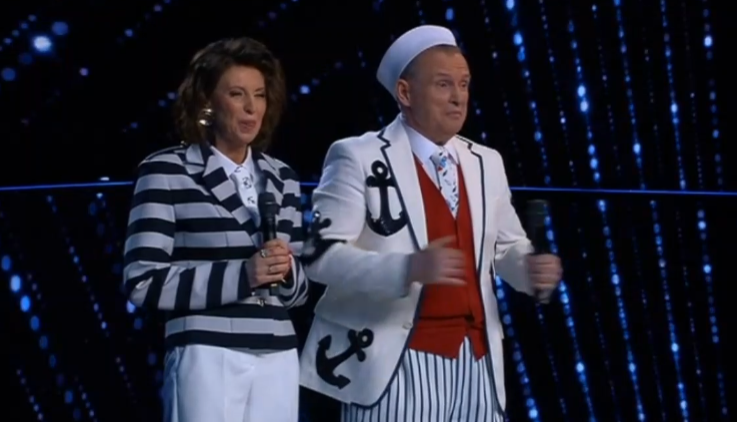 Эх, чего только не приходится делать, когда даёшь обещания не подумав! Здравствуйте! Да, со всеми такое, наверное, случается: пообещаешь что-то сгоряча, а потом надо выполнять. Пыл пропал, а слово не воробей... Смотрю очередной выпуск шоу и делюсь своими размышлизмами. Состав жюри на сегодняшний конкурсный день: Критерии для оценок не разработаны, каждый из членов жюри сам их сочиняет. Боюсь, что сегодня будут одни пятёрки, только насчёт Владимира Маркина есть сомнения. Ну посмотрим. По-прежнему, показываю их лишь тогда, когда на табло появится что-нибудь другое, кроме отличных оценок. Ещё буду ставить свои, чтобы не заскучать. Оказывается, у Владимира Маркина и Сергея Минаева жёны - родные сёстры. Так что и в жюри будет сегодня "семейный подряд". "Я уеду в Комарово". Ну что? Весело получилось, по-рыбински-сенчуковски. Оценку снижаю за то, что хочется уже чего-то посерьёзнее. И в вокальном плане тоже. А то каждый раз получается выступление на капустнике. Моя оценка - 4. "Дев