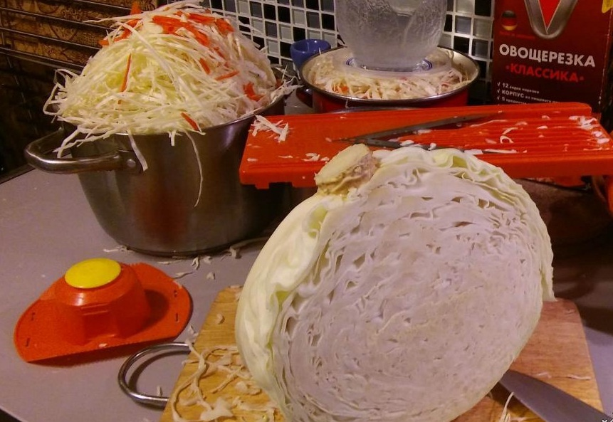 Мои родители пользовались шинковкой. Но между слоями резанной капусты отец иногда закладывал четвертины кочанов. Они был самыми вкусными. Сначала съедали их, а потом доедали шинкованную.