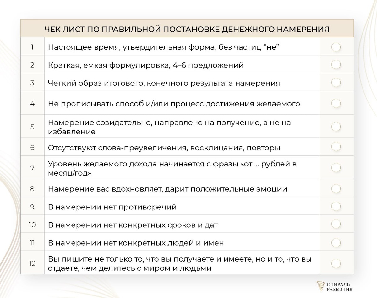 📌Сформулируйте свое денежное намерение в чистом виде (по чек-листу)