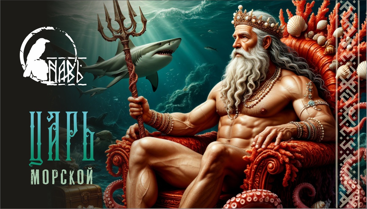 В славянской мифологии Морской царь — это грозный и могущественный владыка всех вод, чей нрав определял судьбу каждого, кто отваживался выйти в море. Он не был просто духом; это был настоящий монарх подводного мира, обладающий несметными богатствами, армией и собственным характером от яростного до влюбленного в музыку. Морского Царя представляли как могущественного повелителя, восседающего на троне в самом сердце подводного мира. 💀 Внешний вид и атрибуты: Он предстает в облике седого старца, подобного волнам. На голове его венец из морского папоротника. В одной руке он держит весло (символ укрощения стихии), а в другой острогу или трезубец, которым возбуждает бури и наказывает непокорных. 💀 Подводное царство: Его дворец, сделанный из хрусталя, золота, серебра и самоцветов, поражает воображение. Он восседает на троне из янтаря, усыпанного жемчугом. В его свиту входят рыбы-советники (сом "со большим усом", щука зубастая, осетр-великан) и стража в виде раков-крабов. 💀 Семья: Его суп