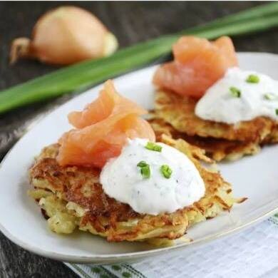 Картофельные котлеты с зеленью и форелью под сметанным соусом