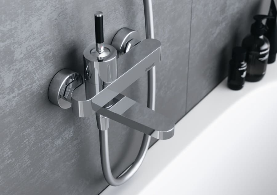 Дизайн разработан GP designpartners — шестигранные формы смотрятся необычно. Внутри установлен картридж SoftMotion 35 мм — регулировка температуры и давления точная и стабильная. Есть аэратор и встроенный обратный клапан. Переключение между ванной и душем — через механический дивертор.