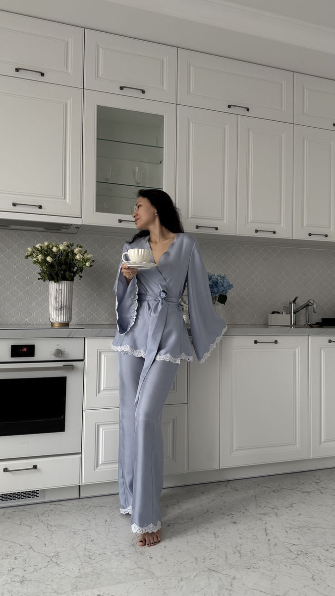 Девочки, признаемся честно: дома мы часто превращаемся… в кого угодно, только не в женщину. Вроде и душ приняли, и ужин готовим, но на нас — старый халат, растянутые легинсы и пучок «на скорую руку». И если мужчина после работы видит нас в таком виде день за днём — не удивительно, что его взгляд всё чаще уходит в сторону телевизора, а не на нас. Но вот в чём секрет: домашний образ может быть и удобным, и привлекательным. Главное — чуть внимания к себе и желание нравиться, прежде всего самой себе. Халат когда-то был символом женственности — мягкие ткани, кружево, запах… Но сейчас большинство женщин носят не халаты, а их печальные “потомки”: застиранные, без формы, купленные «чтобы было удобно». Такой халат не даёт ощущение уюта — он транслирует: «я устала, мне всё равно». А мужчина — существо визуальное. Он видит не ваш характер, не заботу, а именно образ. Если вы дома в «униформе домохозяйки», мозг воспринимает вас не как женщину, а как фон. Хлопковая или льняная пижама пастельного