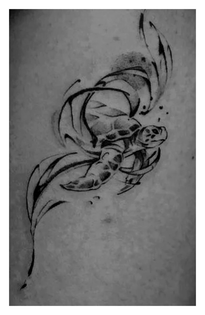 Татуировка черепахи,может иметь глубокое символическое значение. Черепаха ассоциируется с мудростью, долголетием, устойчивостью и защитой. В разных культурах она символизирует разные аспекты: Долголетие и мудрость: Черепахи живут долго, что делает их символом мудрости и жизненного опыта. Защита: Панцирь черепахи символизирует защиту и безопасность. Путешествие и приключения: Черепахи часто ассоциируются с морем и путешествиями, что может отражать стремление к новым горизонтам. Стабильность и терпение: Медленный, но уверенный темп черепахи символизирует терпение и устойчивость. В данном случае татуировка выполнена в минималистичном стиле, что подчеркивает её элегантность и универсальность. Такой дизайн может подойти как мужчинам, так и женщинам, и часто выбирается людьми, ценящими спокойствие, рассудительность и внутреннюю силу.