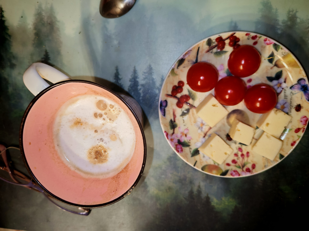 08.15 Мы дома. Пью чай с печенюшками, у собаки творог.