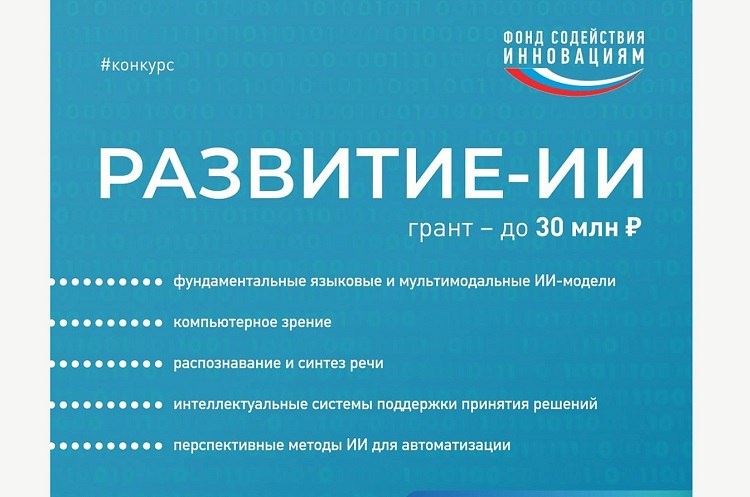 Фонд содействия инновациям объявил о запуске грантового конкурса по программе «Развитие-ИИ». Конкурс направлен на поддержку малых предприятий, имеющих опыт продаж наукоемкой продукции на рынке, а также реализующих проекты по разработке продуктов, сервисов и решений с использованием технологий искусственного интеллекта.