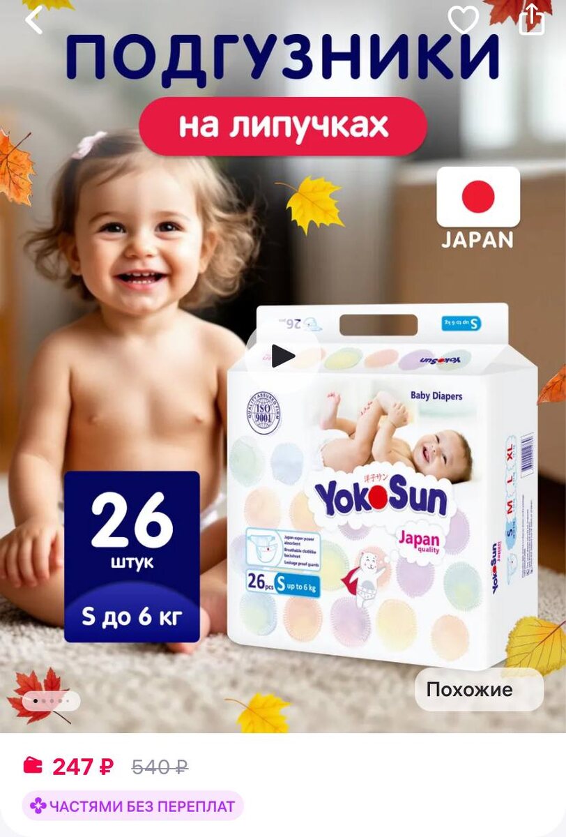 Yokosun Подгузники 2/S (до 6 кг) 26 шт https://www.wildberries.ru/catalog/3888728/detail.aspx?size=14716202 Актуально на момент публикации Подписаться на канал: https://dzen.ru/id/65f30992106fab2943124639 #подгузники #wb #покупки #промокод #акция #купон #распродажа #экономия