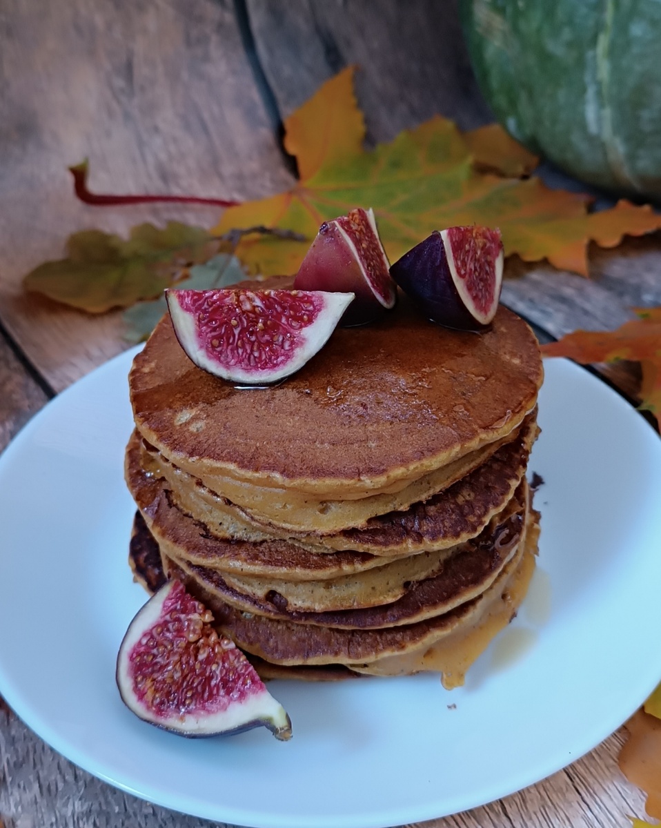Тыквенные осенние блинчики с приятным, тёплым ароматом тыквы и пряностей. Эти блинчики - толстые, воздушные и золотистые, нежные и сочные,тают во рту. Они быстро готовятся, невероятно сытные и идеально подходят для домашних выходных завтраков. Мука пшеничная - 300гр. Молоко - 200мл. Пюре тыквенное - 200мл. Яйца куриные - 2 шт. Сахар коричневый (тростниковый или кокосовый ) - 2 ст.л. Соль - 0,5 ч.л. Корица - 1 ч.л. Мускатный орех - 0,5 ч.л. Ванильный экстракт - по вкусу. Разрыхлитель - 2 ч.л. Масло сливочное растопленное - 2 ст.л. В кастрюлю налейте примерно 100-150мл.воды и опустите тыкву,закройте крышкой, готовьте до мягкости, примерно 20 минут. Снимите тыкву с плиты, взбейте блендером до состояния пюре. Что бы тыквенное пюре не остужать, можно в него влить холодное молоко и перемешать. 2.В отдельной миске смешайте сухие ингредиенты: мука, корица, мускатный орех, ваниль, разрыхлитель. 3.В другой миске взбейте яйца с сахаром и солью до пышной массы, влейте тыквенно-молочную смесь и