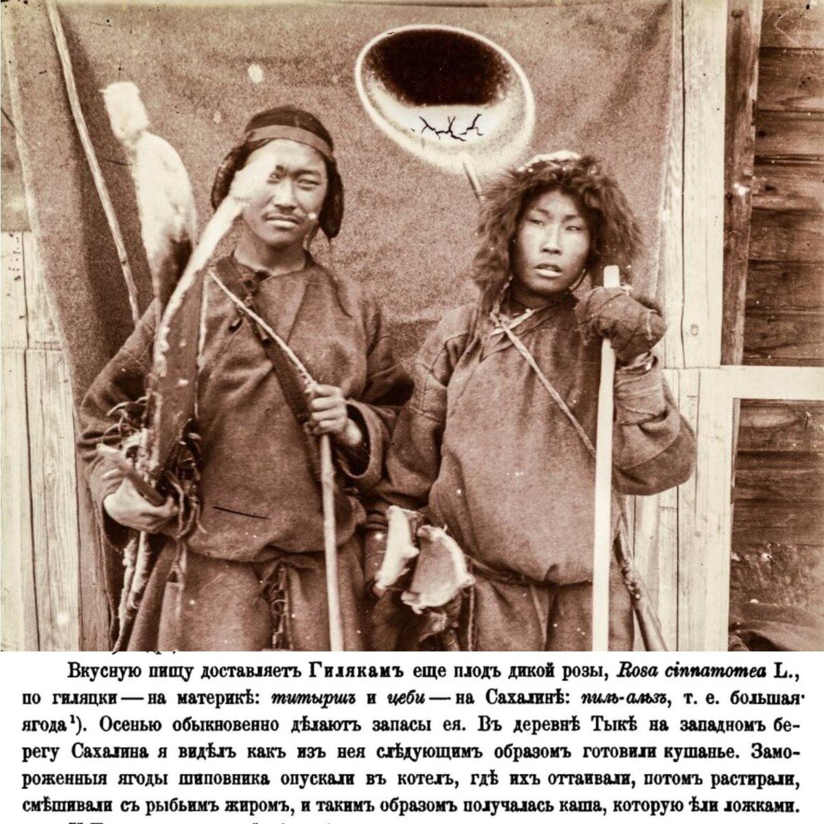 Каша из дикой розы Ни́вхи — малочисленный народ, проживающий на территории России и Японии, коренное население Приамурья, Сахалина и соседних небольших островов. Устаревшее название нивхов — гиляки. Рецепт каши от гиляков - плоды шиповника+рыбий жир. «Вкусную пищу доставляетъ Гилякамъ еще плодь дикой розы, Rosa cinnamomea L., по гиляцки - на материкѣ: титыршъ и цеби - на Сахалинѣ: пиль-альзъ, т. е. большая ягода. Осенью обыкновенно дѣлаютъ запасы ея. Въ деревнѣ Тыкѣ на западномъ берегу Сахалина я видѣлъ как изъ нея слѣдующимъ образомъ готовили кушанье. Замороженныя ягоды шиповника опускали въ котелъ, где ихъ оттаивали, потомъ растирали, смѣшивали съ рыбьимъ жиромъ, и такимъ образомъ получалась каша, которую ѣли ложками». @foodiscovery