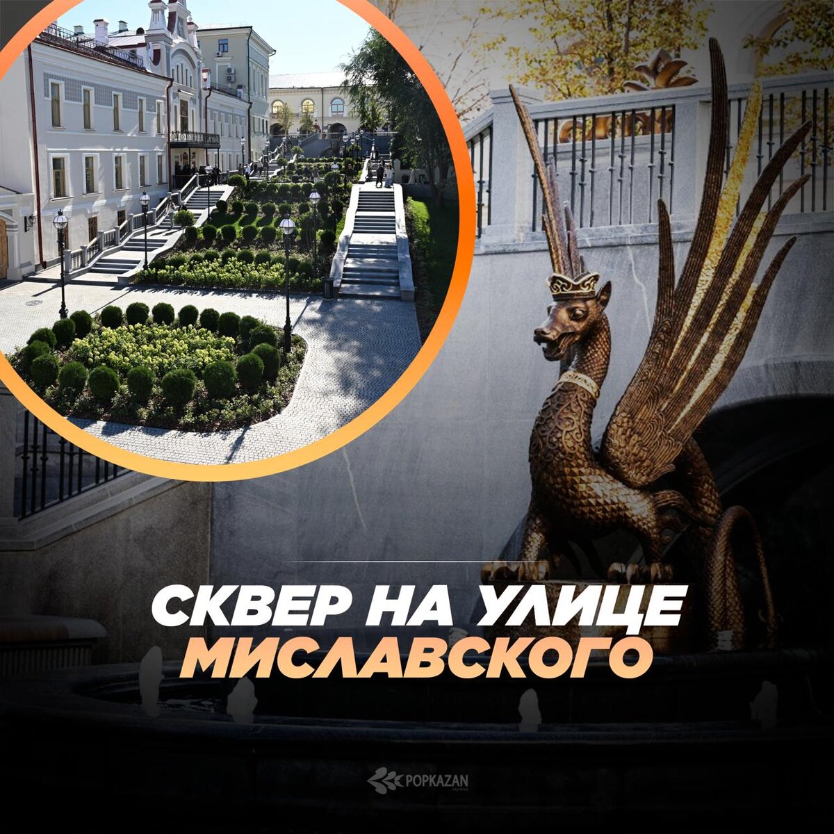 😍 ТОПОВОЕ МЕСТО для прогулки и красивых фотографий Сквер на улице Миславского с двумя лестницами, ведущими на улицу Кремлевскую, под охраной «Зиланта» ❤️ - НРАВИТСЯ 😁 Наш telegram-bot про Казань